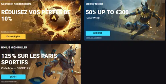 Bonus, promotions et code promo disponibles chez AmonBet Casino