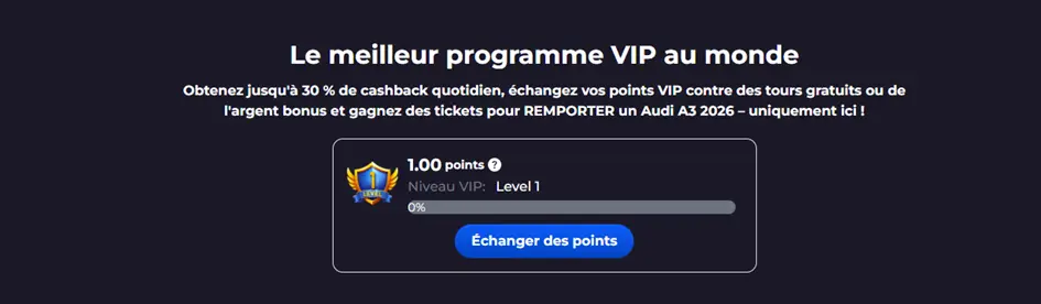 Europa777 propose un programme VIP, qui se compose de 8 niveaux. Chaque euro misé compte pour gagner des points de fidélité, progresser et gagner des récompenses supplémentaires : cashback jusqu’à 30%, conditions de mise plus avantageuses, roue Bonus, cartes Scratch gratuites, etc.