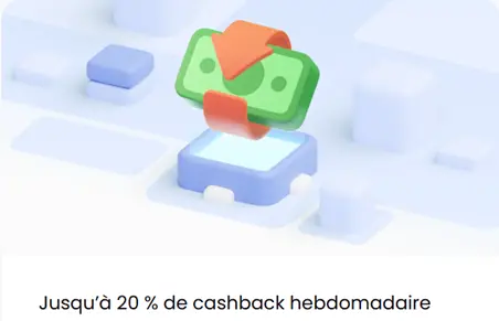 Tous les joueurs bénéficient d’un cashback hebdomadaire allant de 10 à 20 % selon leur activité, à partir du 2e dépôt :